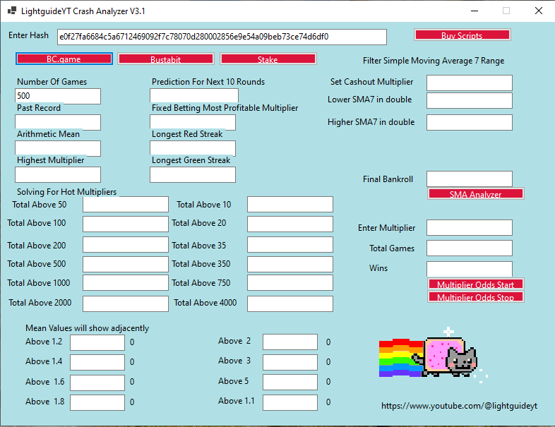 Now bc game does not credit my deposit and I will tell u exact ways to make 20000 dollars from only 400 dollars. 1. Only play crash 2. You need a sha256 crash predictor image attached 3. Message on Telegram to Xubotz to purchase it for 200 dollars T.me/Xubotz 4. This utility will parse the entire hash chain 5. Also take access to advanced manual after purchasing and training videos 6. Also purchase crash wagering and betting bots 7. Nyan bots will be needed which will be set using the multipliers obtained from utility 8. Wagering bots will be betting intelligently on 1.01 to 1.05 to maximize level and rakeback 9. Within a week from signals your account balance will be behind 20000 dollars and then withdraw 10. Now bc game does not allow me to play and is holding my 100000 inr in deposits 11 use my knowledge or stay a beggar 12. Once make 20k dollars switch to bustabit where withdrawals and account is safe till 1 mil dollars