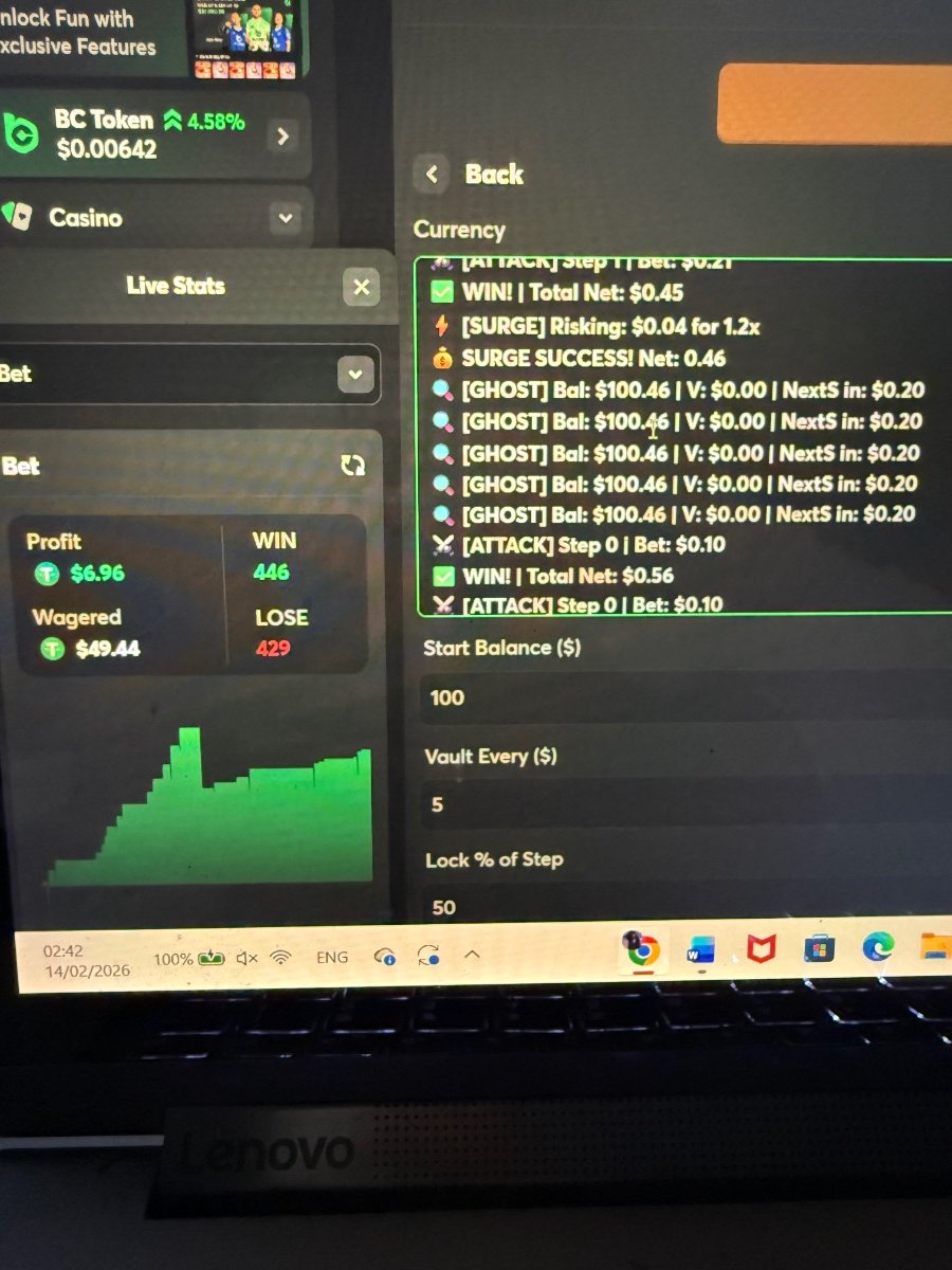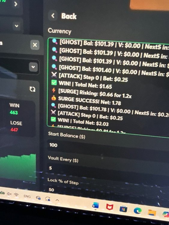 Hi everyone, I’ve been refining a new system for a while now, and I wanted to share the results. I call it the Analytical Vault (V11.0). Unlike basic scripts that just follow a fixed pattern, I designed this one with a "brain" that constantly re-calculates its own safety net. It operates across different mental states: GHOST mode for low-risk observation, ATTACK mode for calculated strikes, and a SURGE mode that compounds profits only when the session is going well. The most important part is the Vault mechanism. Every time the system hits a profit milestone, it automatically "locks" a portion of those winnings. It essentially moves the money to a safe area where the script can't touch it, while simultaneously tightening the Stop Loss to protect what’s already been earned. It’s built for players who are tired of winning and then losing it all in one bad streak. It’s about securing the green as you go. I’m looking to share this with a small group of serious, high-tier players. If you understand how a risk-management system like this works and you’re interested, reach out