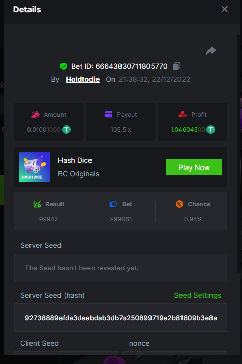 Black Tiger Posted December 22, 2022 Share Posted December 22, 2022 Read Carefully Before Start To Hunt Daily Challenges #107 : HASH DICEHunt :Win the highest pay outMin Payout requirement 100xMin Level 4️Duration Starting : Now End time : 23.59 UTC Time How to Join? Make screenshot + paste your bet link + UID or Profile links Mini bet amount - 0.01$ Any coin allowedReward Prizes 1st Place....... $7 BCD2nd Place..... $5 BCD3rd Place...... $4 BCD 🎖4th Place......$3 BCD5th - 10th Place......$1 BCD 🏵 Winners will be announcing next day after Roll Point 2 Link to comment Share on other sites More sharing options...